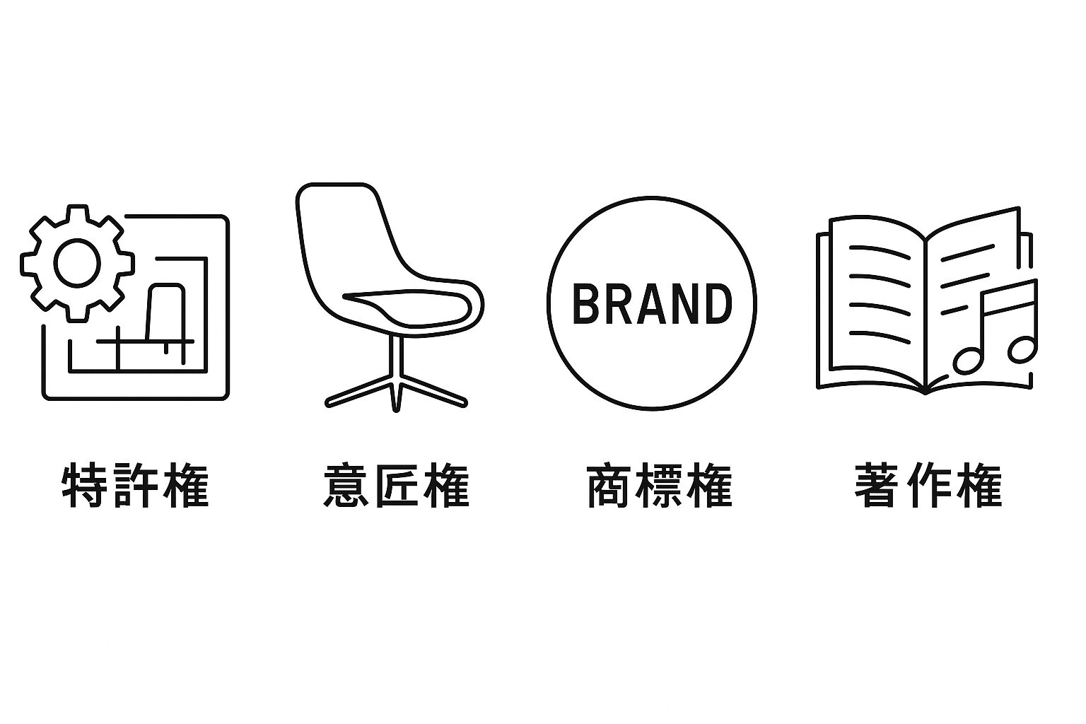 ビジネスやクリエイティブな活動から生まれるアイデアやデザイン、ブランド名などの「知的財産」を守るための権利が「知的財産権」です。その中でも特に重要なのが、「特許権」「意匠権」「商標権」「著作権」の4つです。これらは保護する対象や権利の取得方法が大きく異なります。