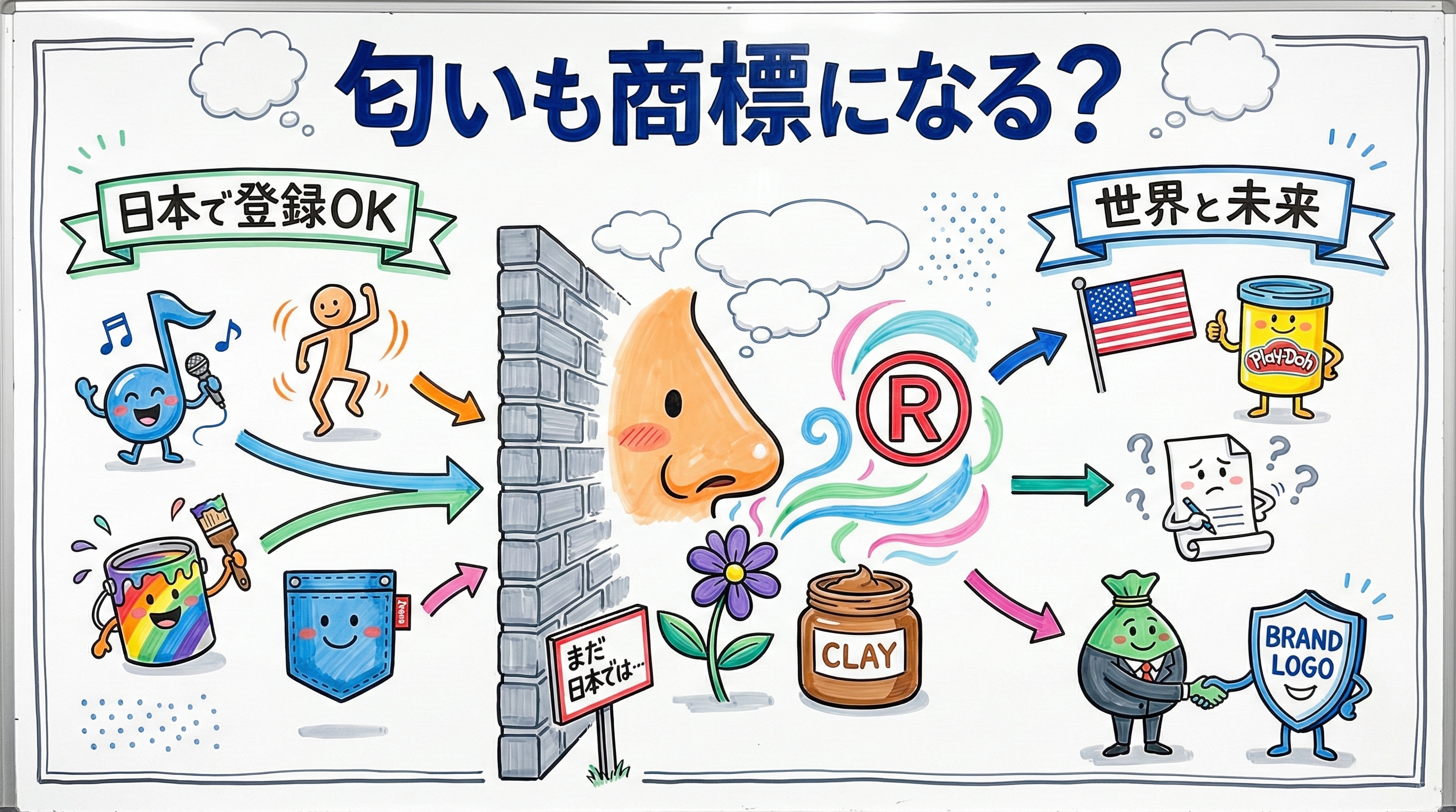 「匂いも商標になる?」という問いへの答えは、「世界の一部ではYES、日本ではまだNOだが、その重要性は飛躍的に増している」です。