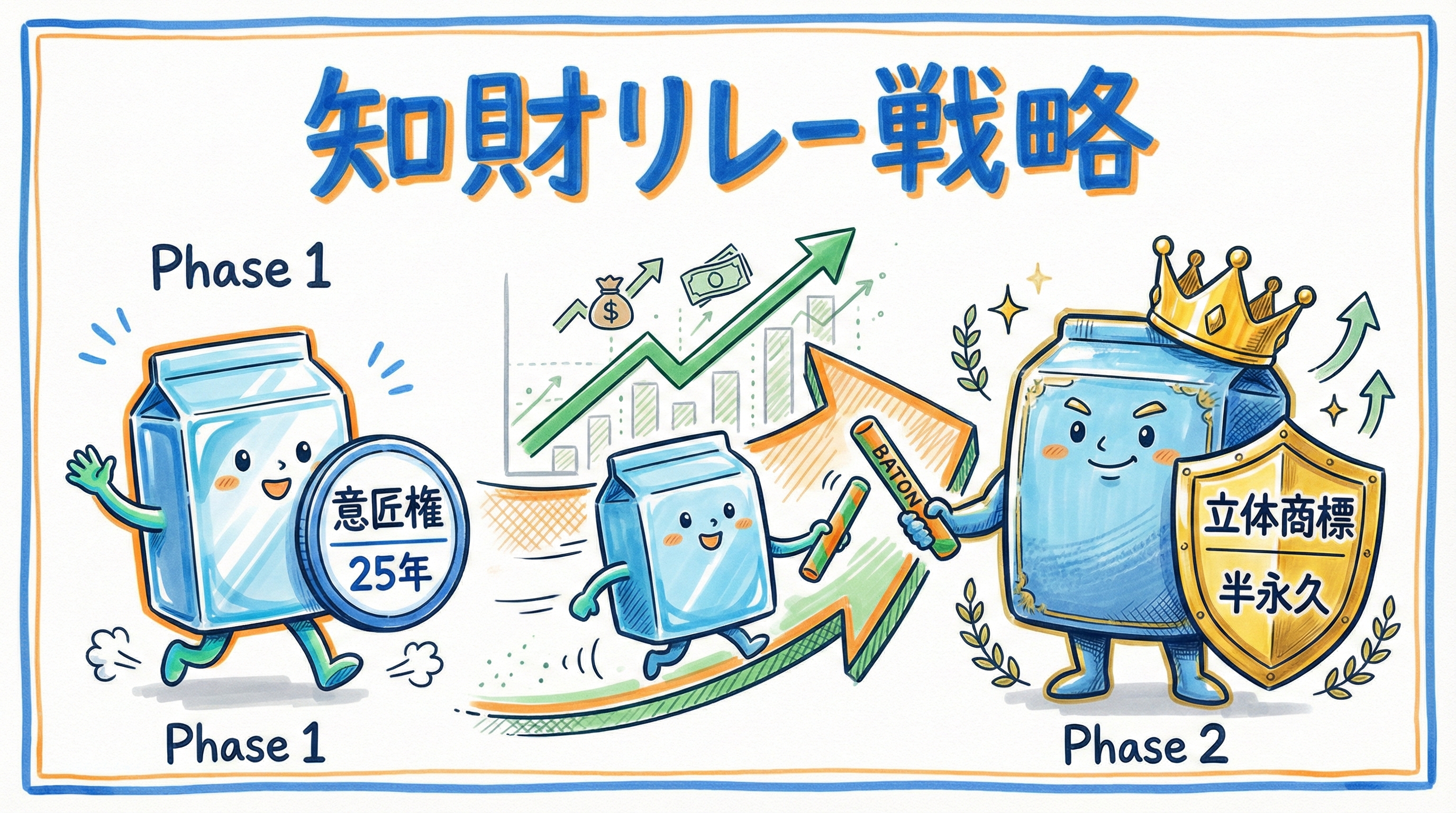 ここまで見てきたように、意匠権と立体商標にはそれぞれ明確な特徴があります。意匠権は「新規性」があれば登録できるが期間制限がある。立体商標は「永続性」があるが登録には長年の実績が必要である。この二つの性質を理解した上で、時系列で組み合わせる「リレー戦略(知財ミックス)」こそが、実務における最適解です 。