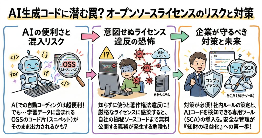 AIが生成したコードにもライセンス義務?オープンソース問題と企業の法的リスク対策