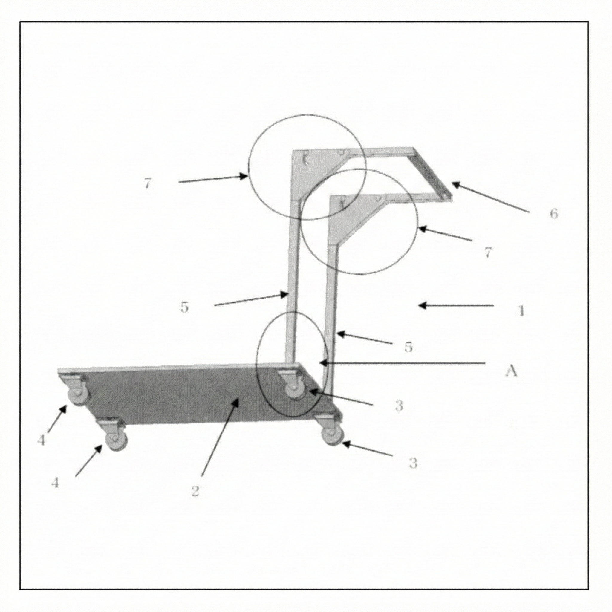自在キャスターを備えた、台車・ショッピングカート等では路面に傾斜があっても自走せず、移動式会議机等では外力が加わっても移動しないことを目的とし、自在キャスターは二つの車輪とその間に配置した回転規制部材からなり、自在キャスターの旋回中心に配置し上下移動可能で回転規制部材の厚みより細いロックピン、ユーザーが停止と走行を選択する選択手段、選択結果をロックピンに伝える柔軟な伝達手段からなり、ユーザーが選択手段により停止を選択するとロックピンが下がり回転規制部材がロックピンによって規制されて車輪が回転不可能、走行を選択するとロックピンが上がって回転規制部材の規制が解除されて車輪が回転可能となる。